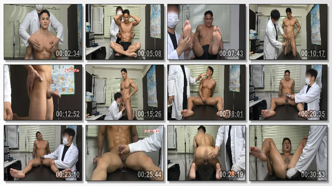 出身地:広島、血液型:B型、部活歴:キックボクシング、趣味:筋トレ・釣り、胸回り:104cm、乳首:2.7cm、足:27cm、ちんこ平常時:11cm、ちんこ勃起時:16cm。タイトなトレーニングウェアでバルキーな肉体が強調されとてもエロい樹生くん!!自在に動く胸筋を揉みしだかれ、強靱な肉体はくすぐりには弱くすごい力で抵抗してしまう。超モッコリのパンツで玉も竿もぷるぷる!!AVを見てもらうとノーハンドでムクっと勃起!!シゴかれシャブられるとエロい吐息漏らして感じまくる!!デカマラを激しくシゴかれ濃厚ザーメン放出し、そのまま責められると大量の潮吹き噴射!!アナルの検査ではキツい穴にズボズボと出し入れされ雄声が止まらない!!(のんけ診察室)